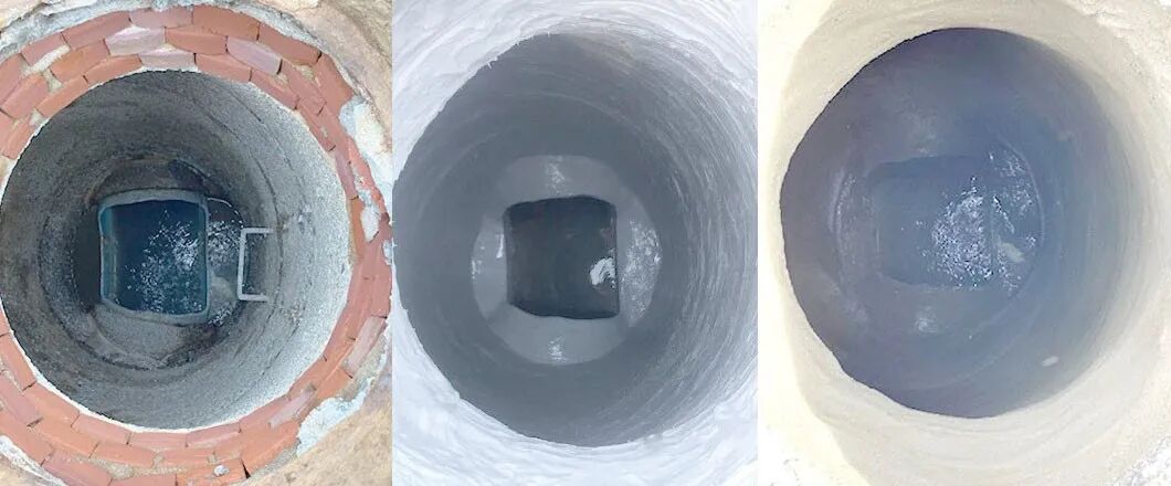 Because of high H2S levels, the project called for the cementitious liner to have an epoxy applied as a second coat to further protect the manhole from future hydrogen sulfide damage.