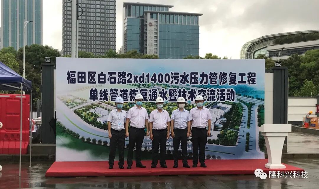 隆科兴秉承持续提升水环境质量、解决水安全复杂问题的理念,以技术为依托,结合施工、材料、设备等全方位一体化的服务,奋勇拼搏,锐意进取,以坚实的步伐承担推进绿色发展、建设美丽中国的社会责任,以更加优质的服务和产品推动“隆科兴”品牌的高质量发展。该项目的顺利通水,标志着深圳市白石路项目污水压力管修复工程取得了阶段性的成功,迎难克艰,遇到问题积极应对,彰显了隆科兴人勇于担当的精神及完善的修复实力。