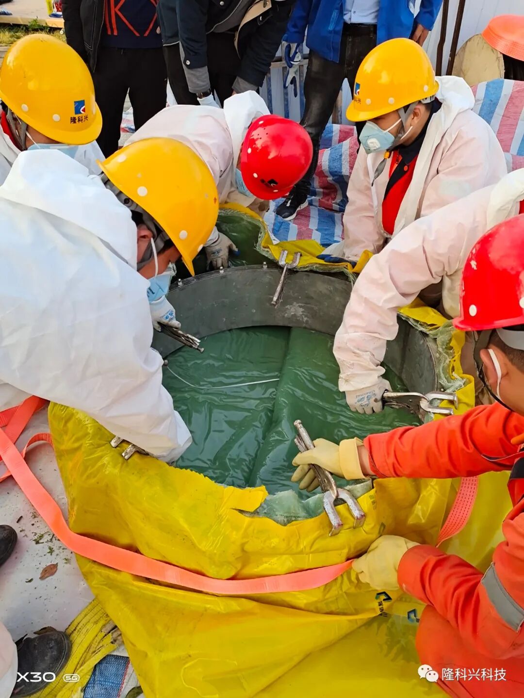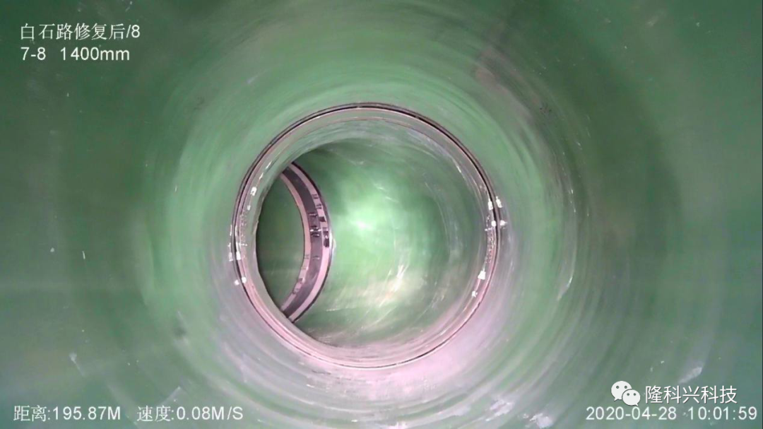 该工程最长井段达到640m,大大超过了传统管道修复长度的100m-120m极限。隆科兴通过固化设备的分体、小型化研发和管道内内衬管连接的技术创新,成功实现了长距离管道管内分段修复技术的应用。
